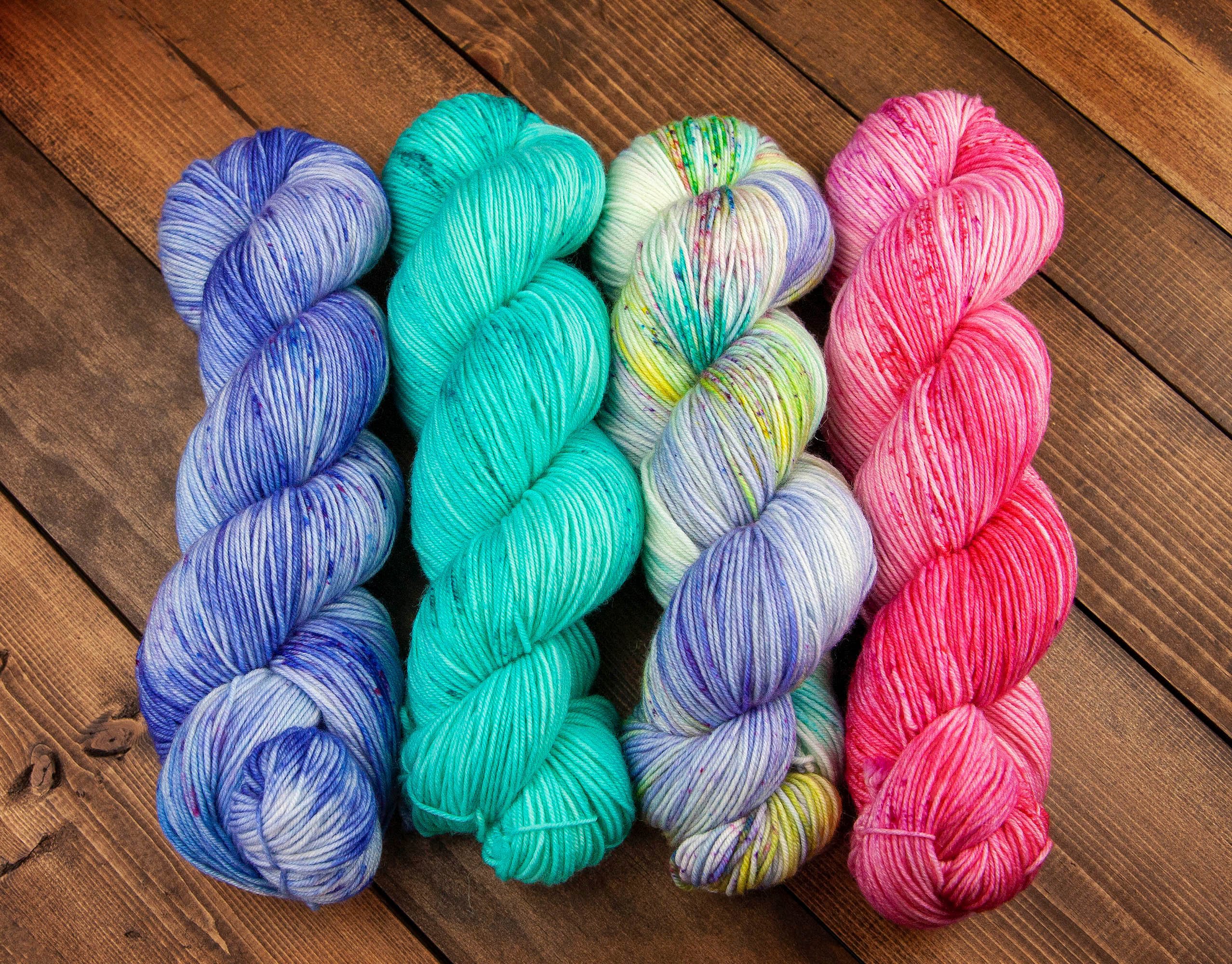Speckled Eggs, Bubblegum, Cornflower, Caribbean on Fanciful Sock